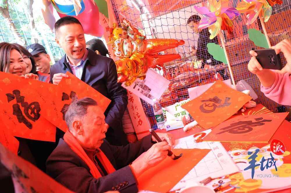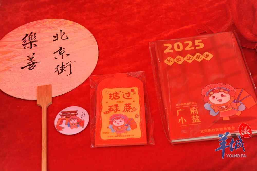 在西湖路花市99号大塘街慈善义卖摊位,同样将慈善的氛围感拉到极致。不仅有广州市内首家粤剧幼儿园越秀区豪贤路嘉兴幼儿园的小朋友带来的粤剧表演“彩云追月”,还邀请了大塘街IP“贡仔”参与粤剧服饰走秀“贡仔粤来粤秀”。重量级嘉宾粤语相声泰斗、国家一级演员黄俊英为花市义卖活动致祝福词,并当场挥毫送“福”气。