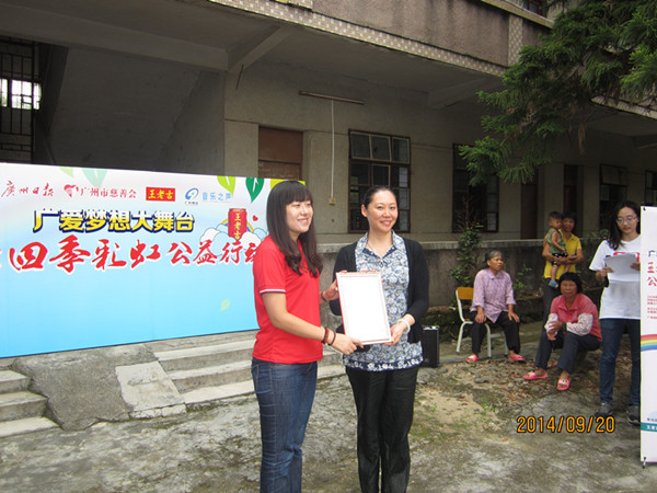 9月20日,由广州市慈善会、广州日报社、广东电台音乐之声、广州王老吉大健康产业有限公司联合主办的广爱梦想大舞台之王老吉“四季彩虹”公益行动走进广州从化爱群村,为山区贫困儿童送上助学金,帮助他们实现“微心愿”。在活动捐赠仪式上,广州市慈善会副秘书长胡英向捐赠企业广州王老吉大健康产业有限公司颁发捐赠证书,并同其他主办方代表为30名贫困儿童颁发助学金。仪式后,主办方代表、彩虹暑期工、爱心家庭代表开展爱心家访,与受助留守儿童一起劈柴烧饭、捉鱼摘果、聊聊家常,体验不一般的公益旅程,帮助贫困儿童实现“微心愿”。主办方希望通过对广东贫困山区留守儿童微心愿的征集和认领,为社会各界爱心人士和广东贫困儿童之间筑起一道“爱的彩虹”,让爱通过这道彩虹在人们心间流动,号召更多人能行善举,关注贫困山区留守儿童这个群体,将公益的力量持续放大,希望这样的彩虹真的能“四季常在”。