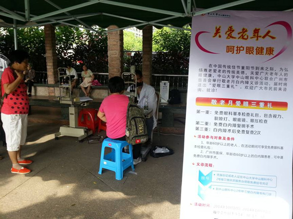 为弘扬尊老爱老的传统美德,关爱广大老年人的眼健康,广州市慈善会、中山大学中山眼科中心在2014年10月10日-10月31日期间联合举行敬老月“关爱老年人”白内障义诊活动。