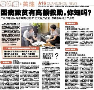 周老师一家的不幸,本报曾于今年9月17日A20版进行报道(《不奢望白头到老 但求他多活两年》),募集到8万多元的“救命钱”,但只是杯水车薪。然而,周老师全然不知身为广州户籍居民,每年最高可获33万医疗救助。而事实上,这个医疗救助政策已经推行了1年多。为什么好政策少人知?一旦遇上因病致贫,应该怎样求助?
