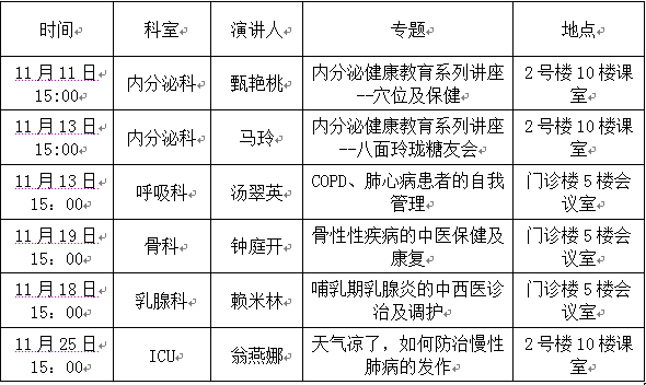 广州市慈善医院2014年11月健康教育讲座简讯