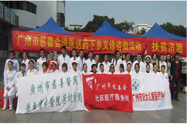 11月21日是世界问候日。这个温馨浪漫的节日,让忙碌的人们感受他人关怀,促进人与人之间相互关系,共同建设和谐社会,已成为人类促进相亲相爱为主题的纪念日。当天,广州市慈善会携手广州白云山和记黄埔中药有限公司、萝岗区慈善会和市慈善医院、中山医科大学第一附属医院东院、市妇女儿童医疗中心、南方医院燕岭医院、市民政局精神病院5家医疗机构在南沙区大岗镇文体中心,共同举行了“送医送药下乡”第九期慈善医疗公益活动,为大岗镇的群众送去“义诊、赠药、咨询”的健康问候。上午9点,上千名群众已赶到活动现场,40多位医务专家为当地困难群众1500多人进行了义诊和免费赠药活动,医护人员还为一位患有白内障术后导管堵塞的88岁老人提供了上门服务,白云山和记黄埔中药有限公司为南沙区大岗镇群众免费赠送了价值2万元的非处方药品1000多份,市慈善会现场发放《广州市爱蕾行动困境儿童援助计划》、《广州市慈善医疗和应急救助办法》宣传小册子1000多份并解答相关慈善医疗救助政策。