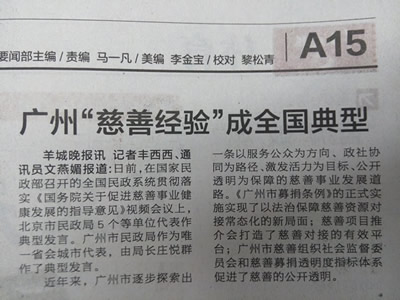 近年来,广州市逐步探索出一条以服务公众为方向、政社协同为路径、激发活力为目标、公开透明为保障的慈善事业发展道路。《广州市募捐条例》的正式实施实现了以法治保障慈善资源对接常态化的新局面;慈善项目推介会打造了慈善对接的有效平台;广州市慈善组织社会监督委员会和慈善募捐透明度指标体系促进了慈善的公开透明。