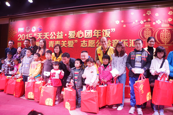 由广州市慈善会和新快报联合主办的“天天公益?爱心团年饭”活动于2月14日中午在广州远洋宾馆国际会议厅温暖开席。羊城晚报社副总编辑、新快报社社长、总编辑孙璇,新快报社副总编辑陶勇和广州市慈善会副秘书长周新与地中海贫血患儿家庭、重症患儿家庭、失独家庭、单亲特困家庭等近200个家庭共400多位困难家庭成员欢聚一堂,在欢声笑语中喜迎新春,提前过年。
