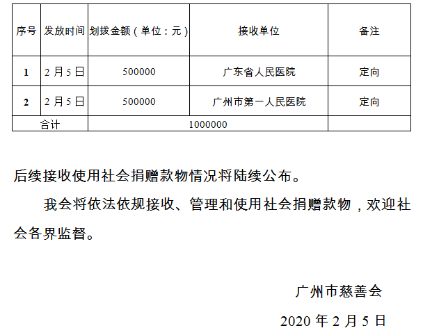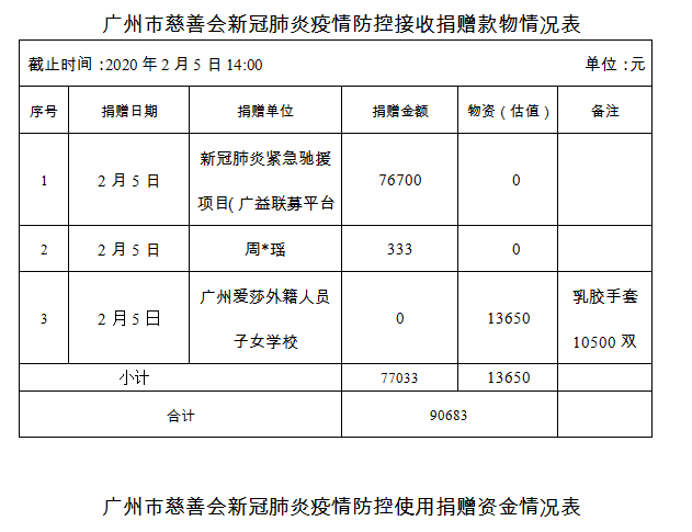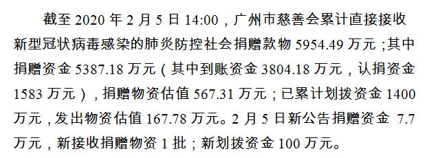 广州市慈善会关于新冠肺炎防控社会捐赠款物接收使用情况的公告(五)