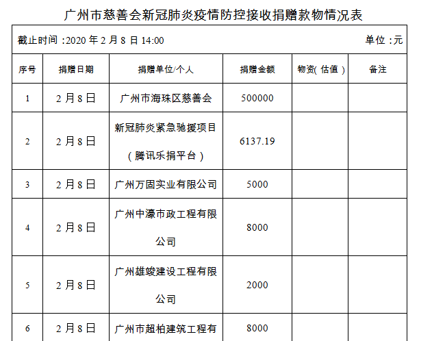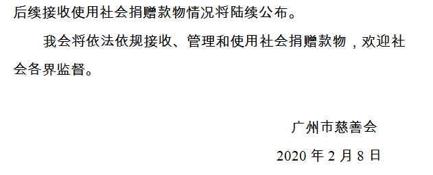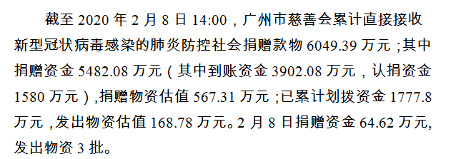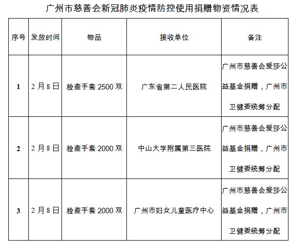 广州市慈善会关于新冠肺炎防控社会捐赠款物接收使用情况的公告(八)