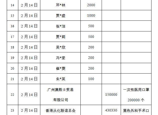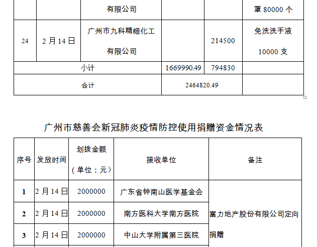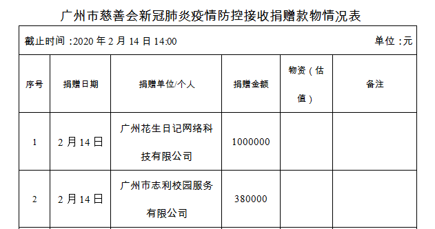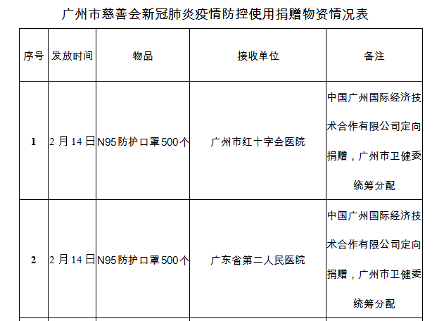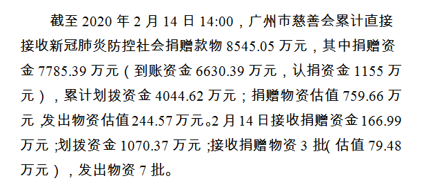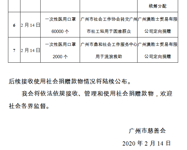 广州市慈善会关于新冠肺炎防控社会捐赠款物接收使用情况的公告(十四)