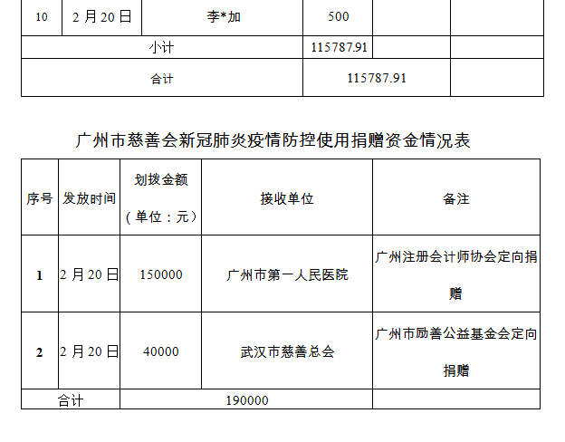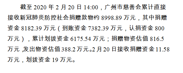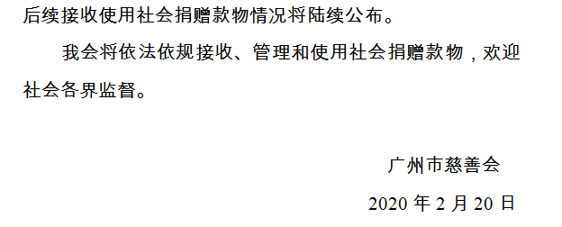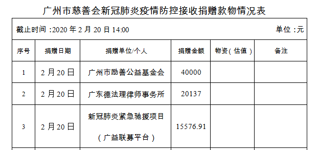 广州市慈善会关于新冠肺炎防控社会捐赠款物接收使用情况的公告(二十)