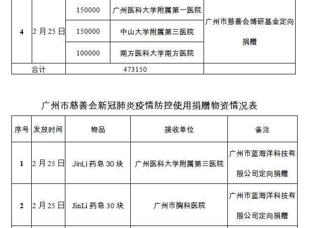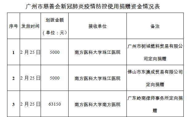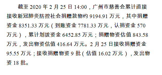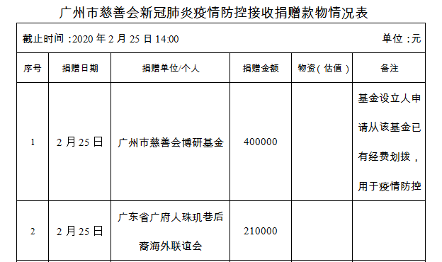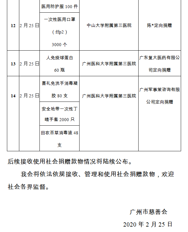 广州市慈善会关于新冠肺炎防控社会捐赠款物接收使用情况的公告(二十五)