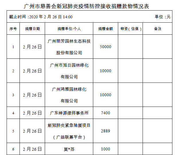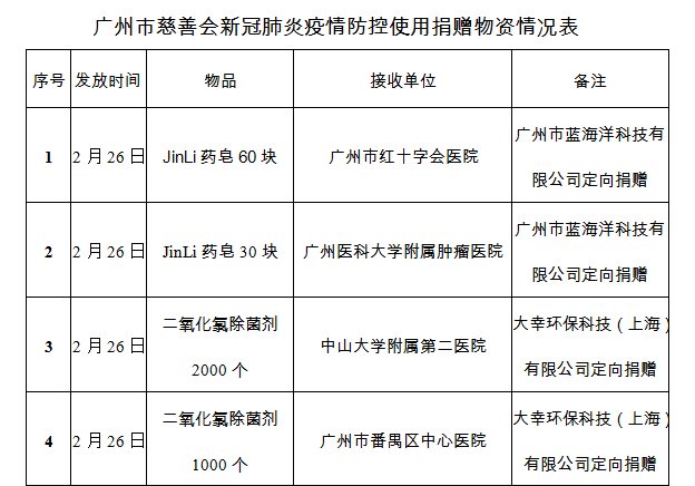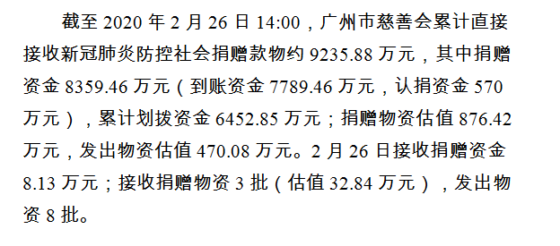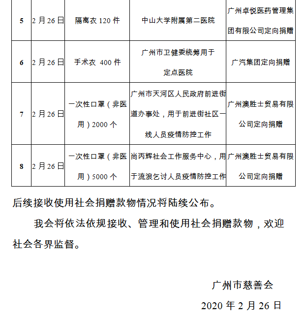 广州市慈善会关于新冠肺炎防控社会捐赠款物接收使用情况的公告(二十六)