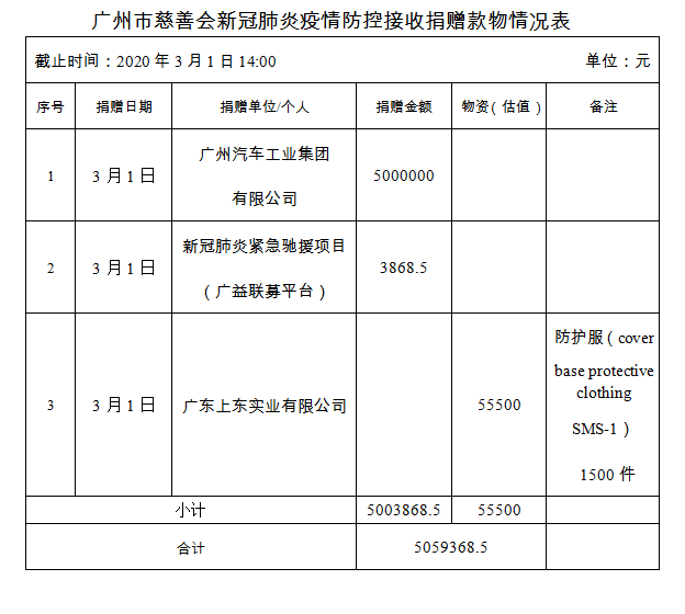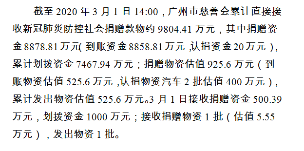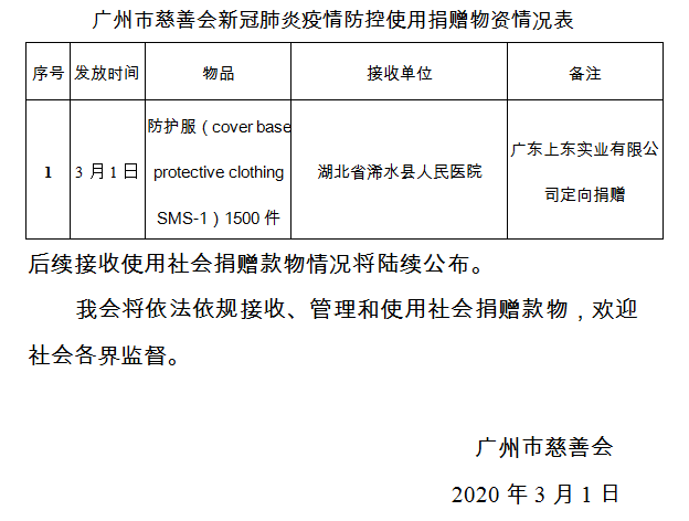 广州市慈善会关于新冠肺炎防控社会捐赠款物接收使用情况的公告(三十)