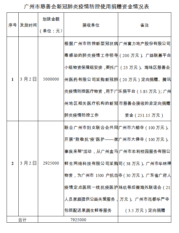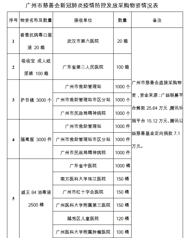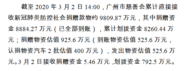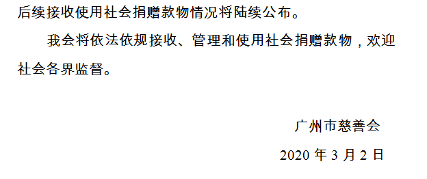 广州市慈善会关于新冠肺炎防控社会捐赠款物接收使用情况的公告(三十一)