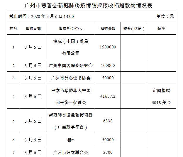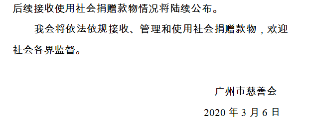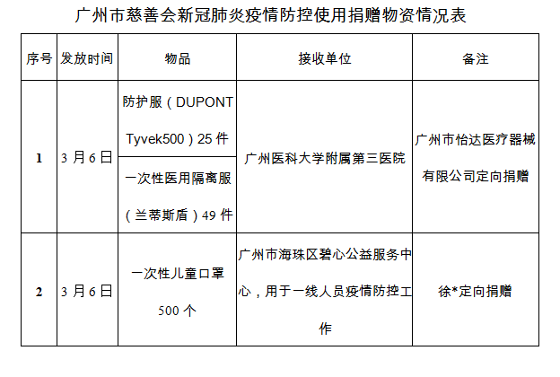 广州市慈善会关于新冠肺炎防控社会捐赠款物接收使用情况的公告(三十五)