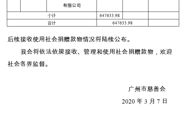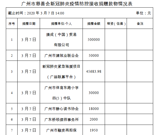 广州市慈善会关于新冠肺炎防控社会捐赠款物接收使用情况的公告(三十六)