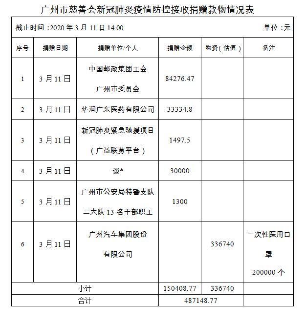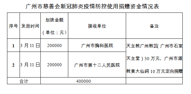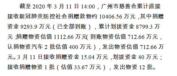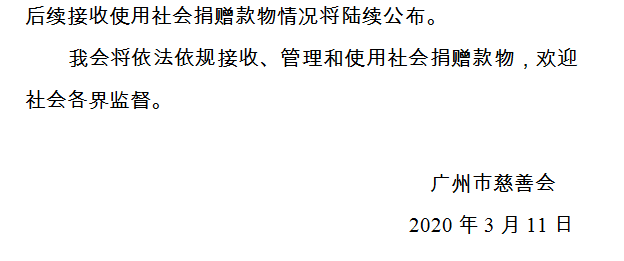 广州市慈善会关于新冠肺炎防控社会捐赠款物接收使用情况的公告(四十)