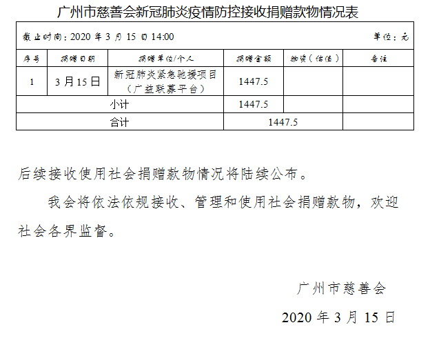 广州市慈善会关于新冠肺炎防控社会捐赠款物接收使用情况的公告(四十四)