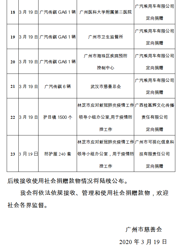 广州市慈善会关于新冠肺炎防控社会捐赠款物接收使用情况的公告(四十八)