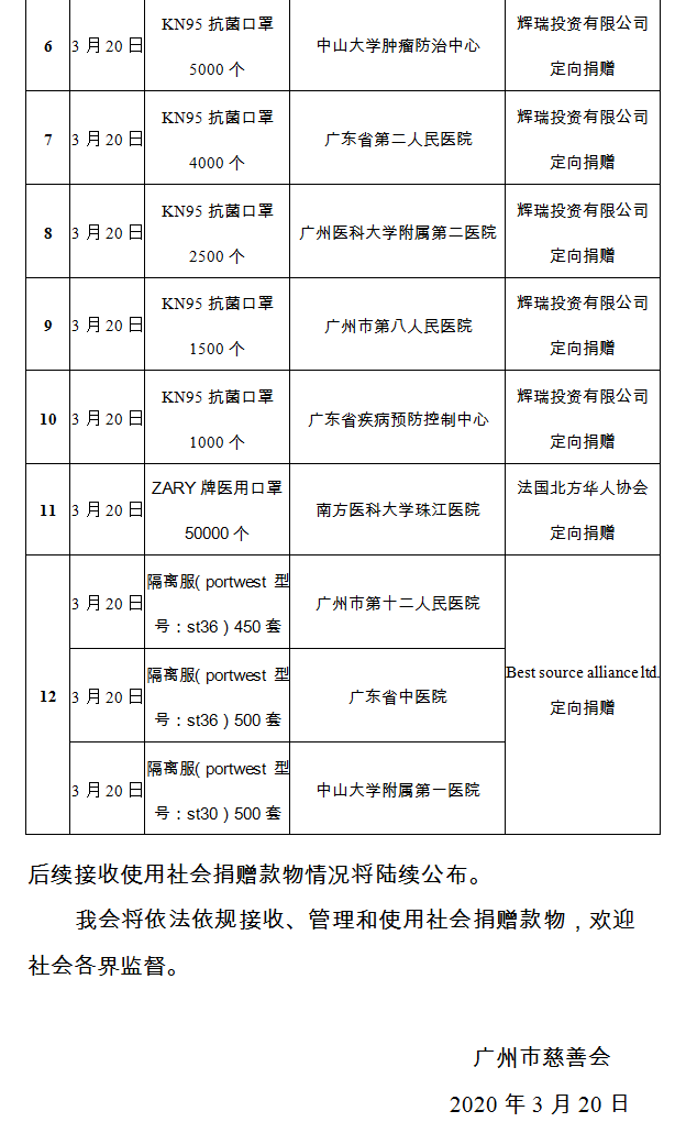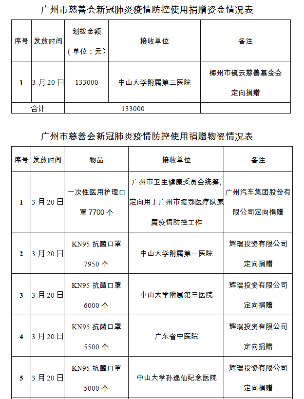 广州市慈善会关于新冠肺炎防控社会捐赠款物接收使用情况的公告(四十九)