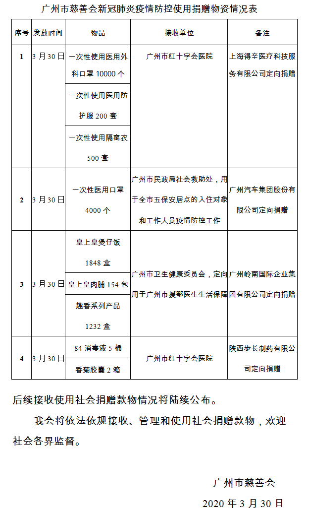 广州市慈善会关于新冠肺炎防控社会捐赠款物接收使用情况的公告(五十九)