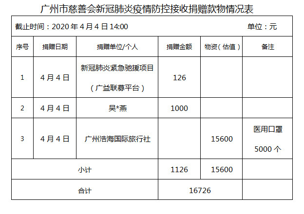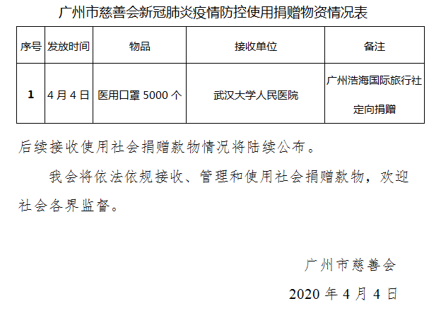 广州市慈善会关于新冠肺炎防控社会捐赠款物接收使用情况的公告(六十四)
