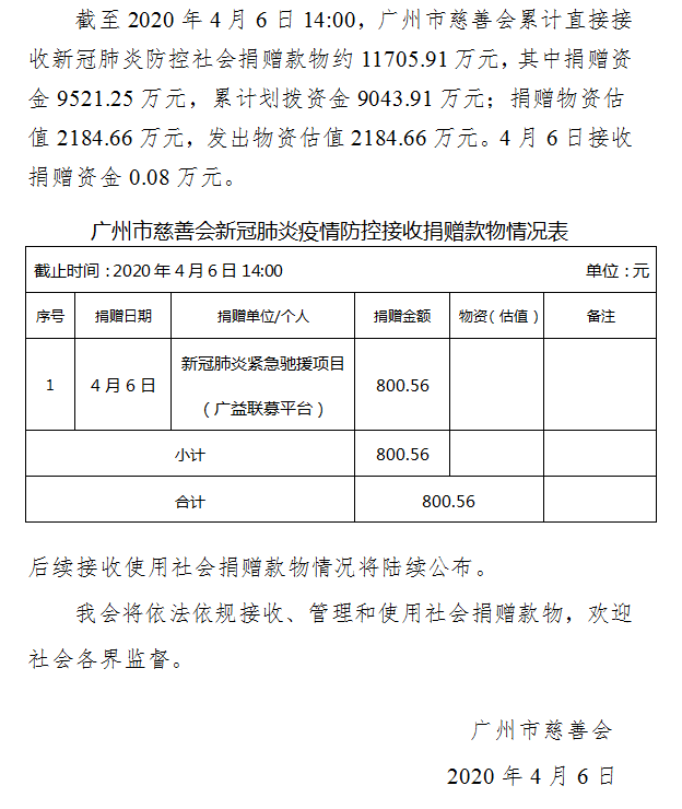 广州市慈善会关于新冠肺炎防控社会捐赠款物接收使用情况的公告(六十六)