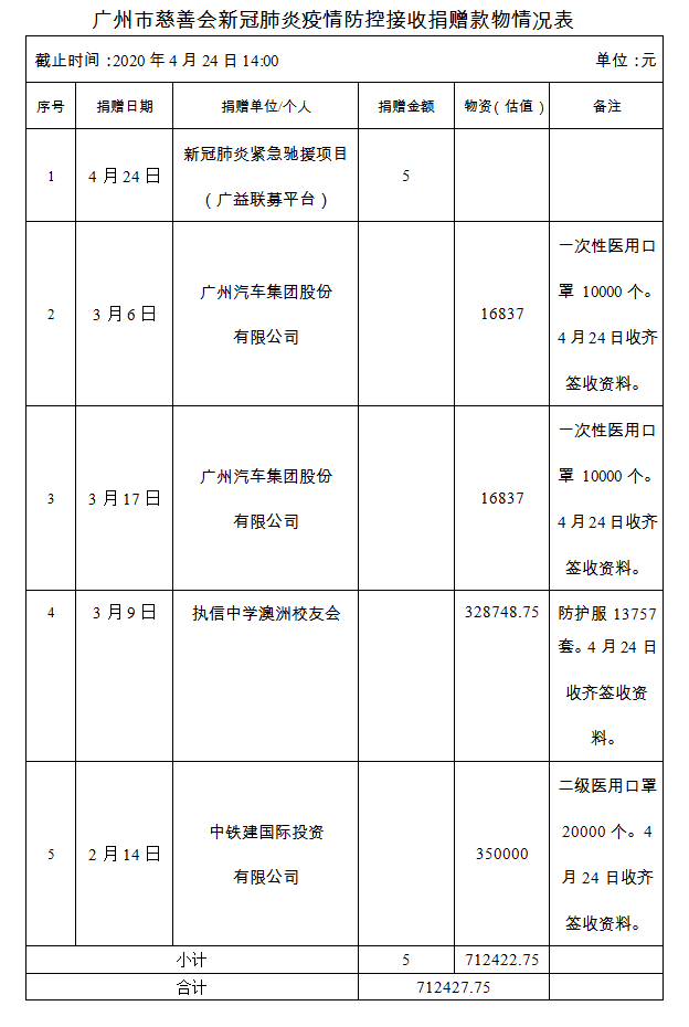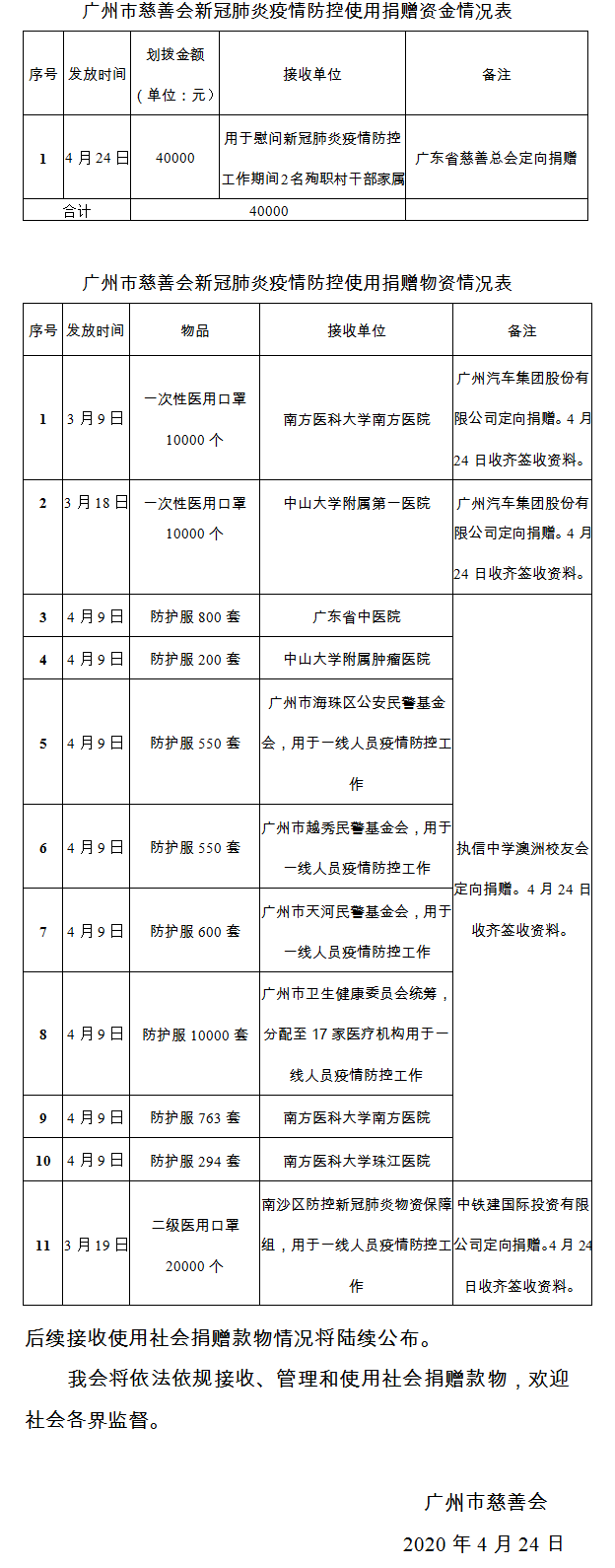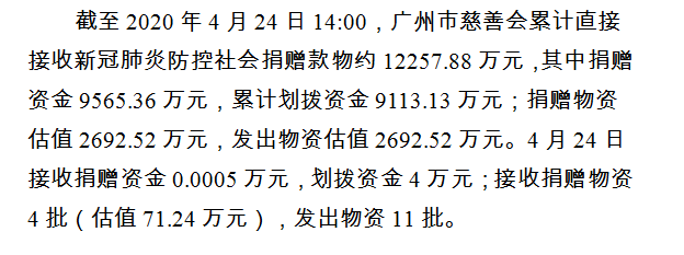 广州市慈善会关于新冠肺炎防控社会捐赠款物接收使用情况的公告(八十四)