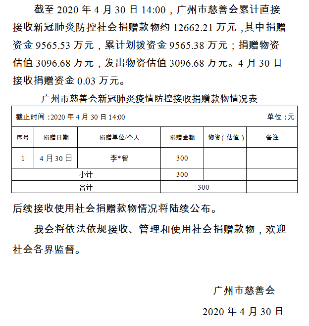 广州市慈善会关于新冠肺炎防控社会捐赠款物接收使用情况的公告(九十)