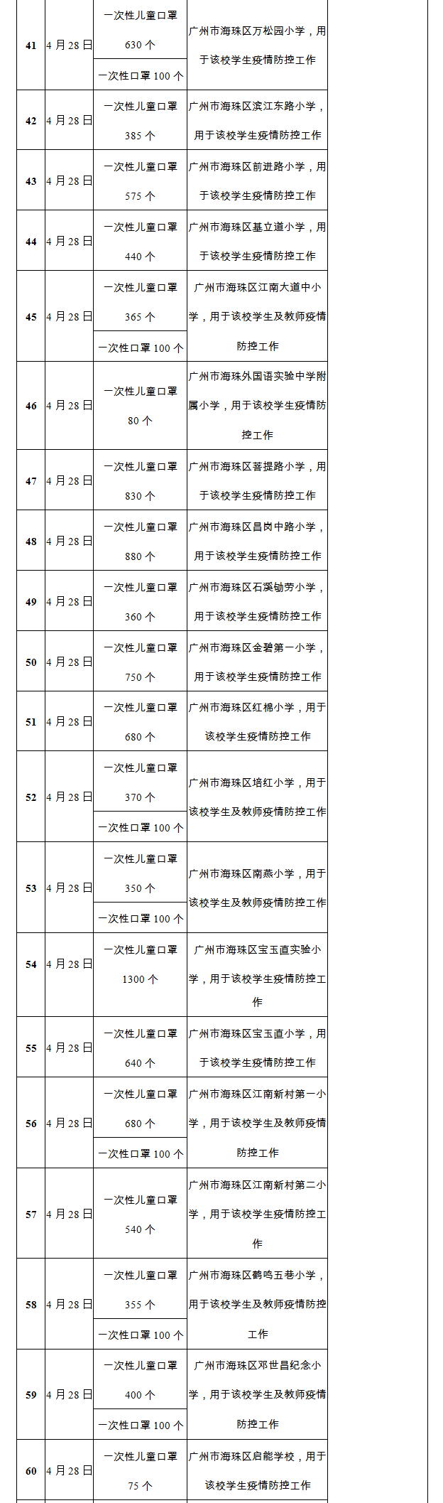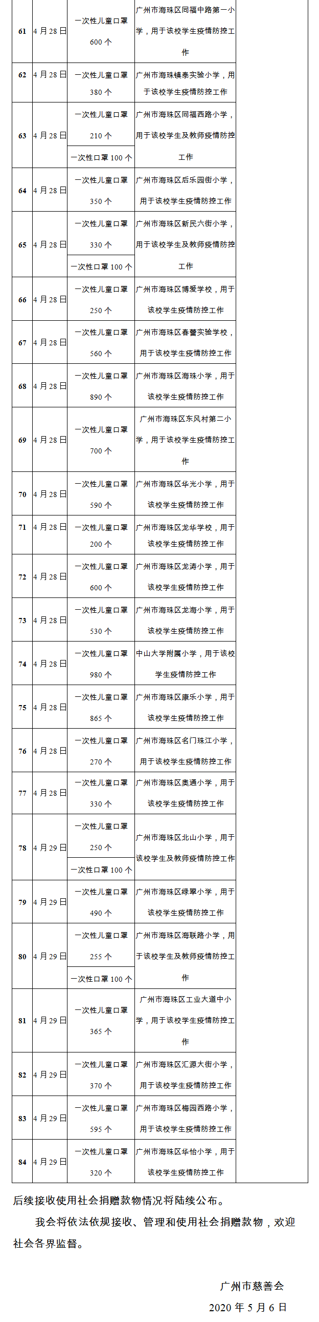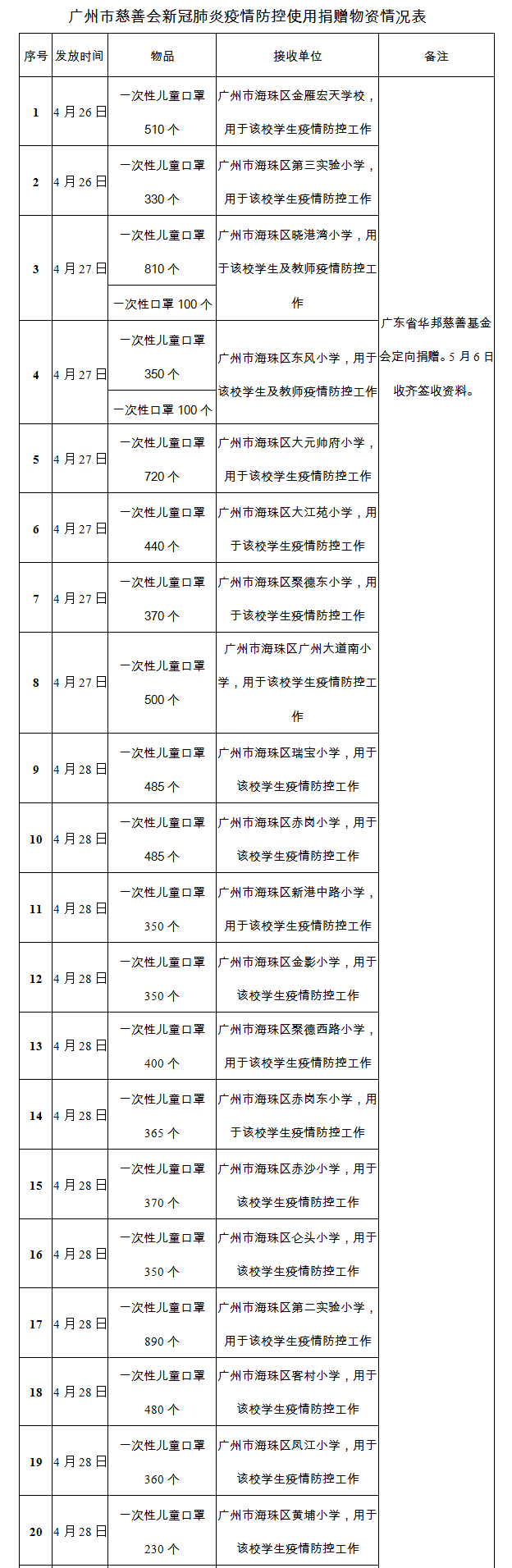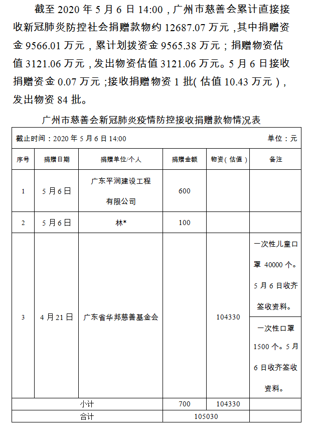 广州市慈善会关于新冠肺炎防控社会捐赠款物接收使用情况的公告(九十六)