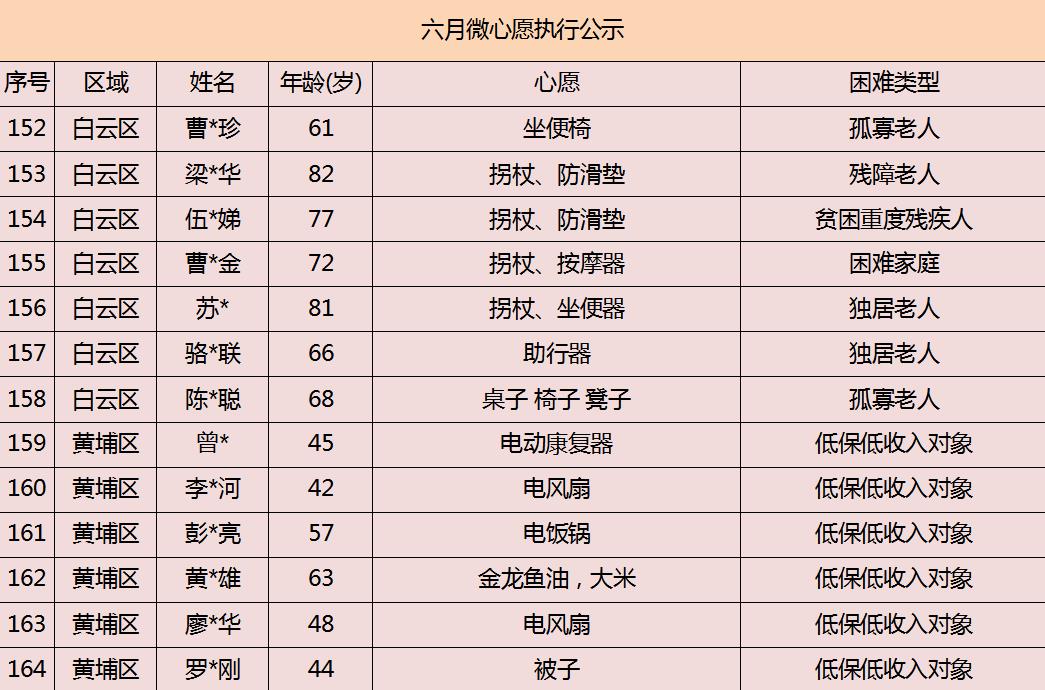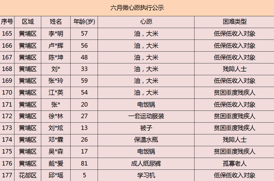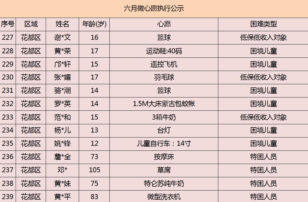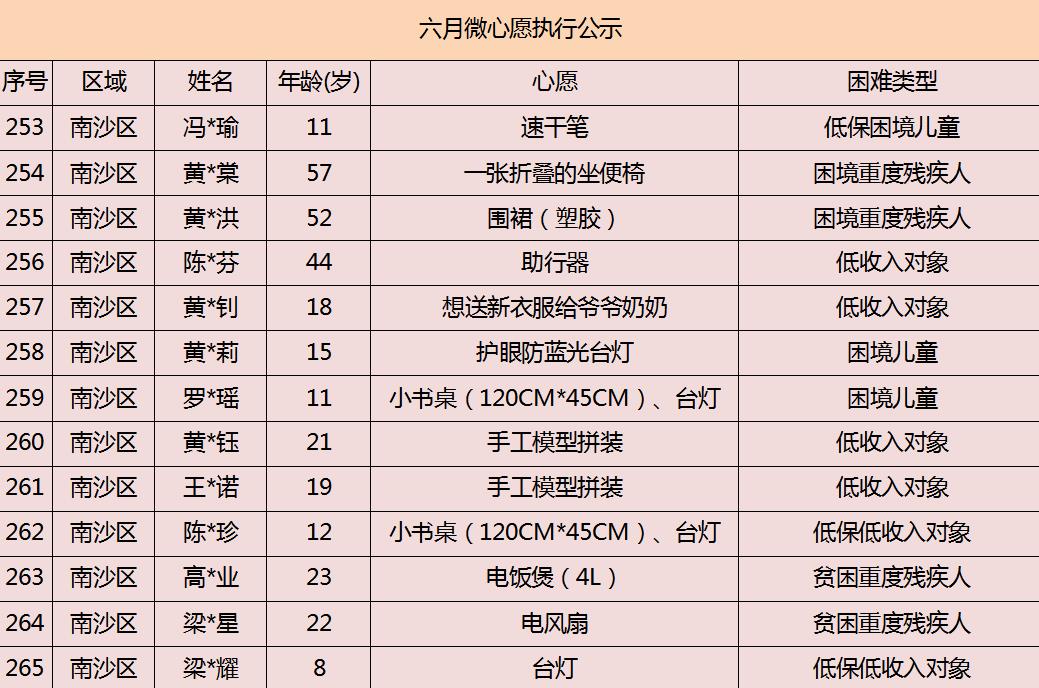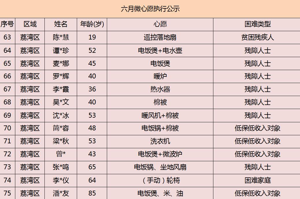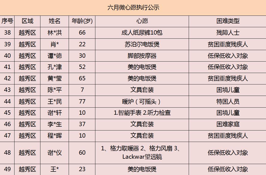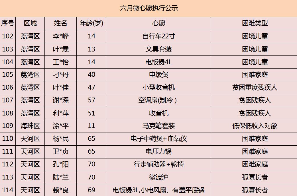 2020年广州市慈善会6月“微心愿·善暖万家”执行名单公示