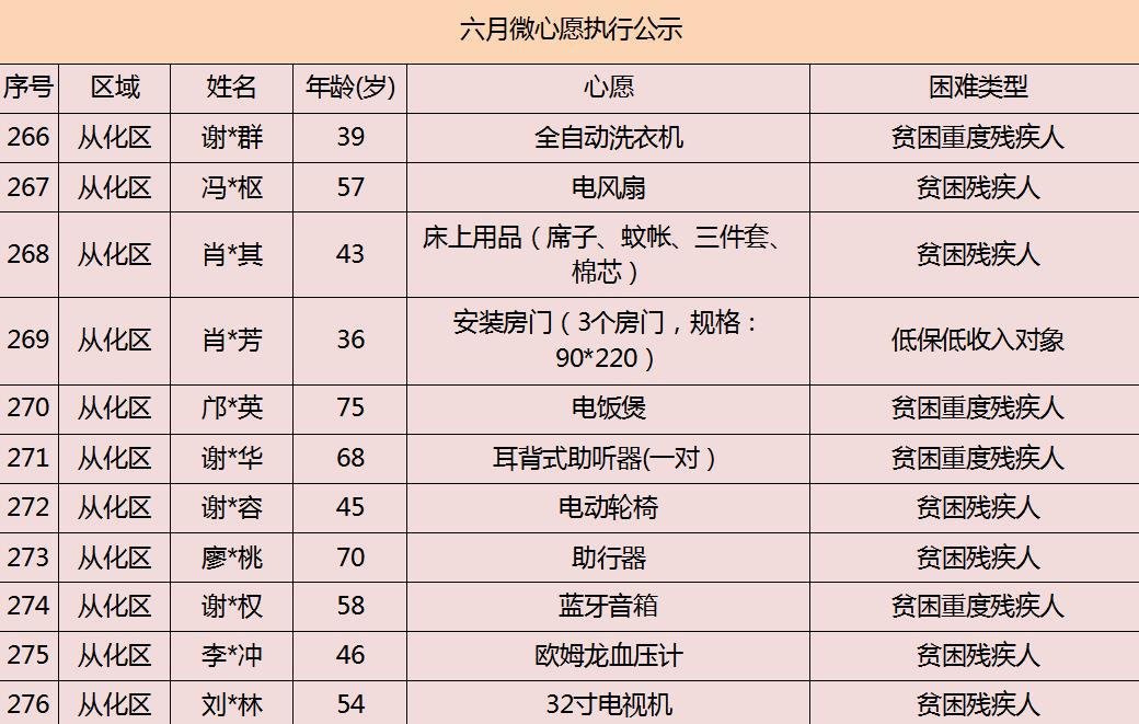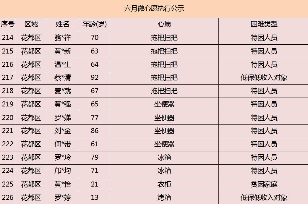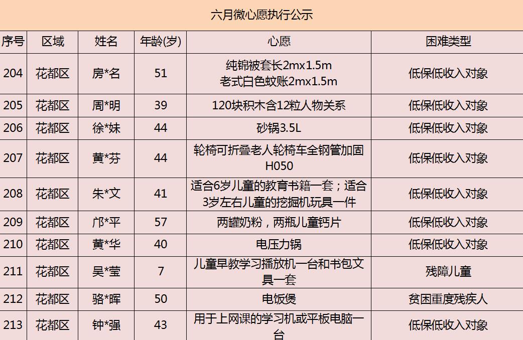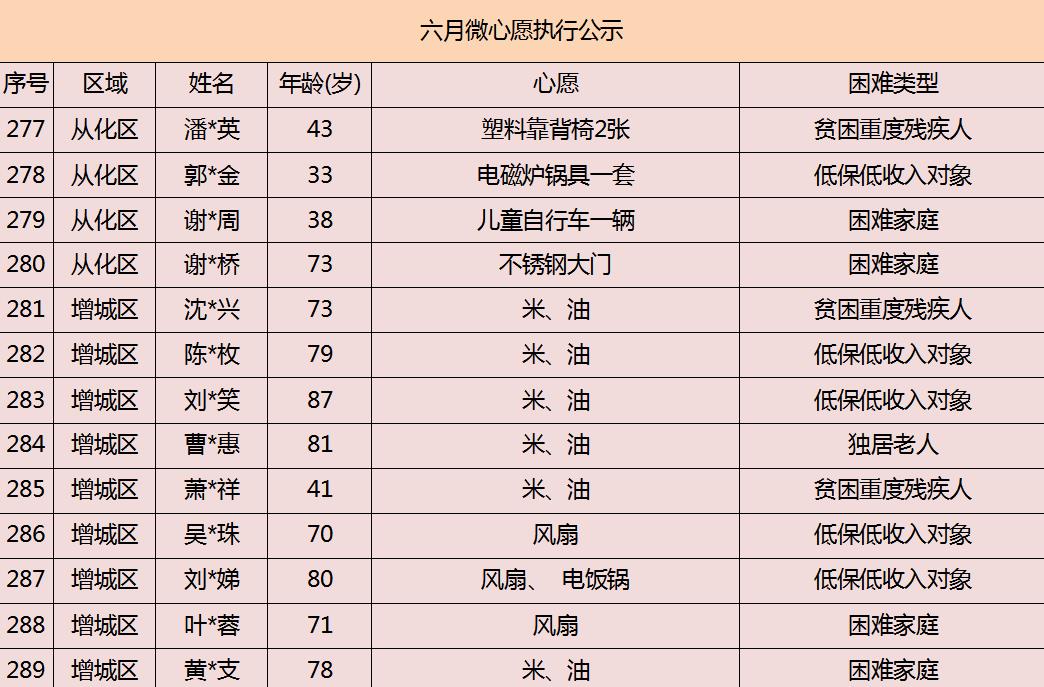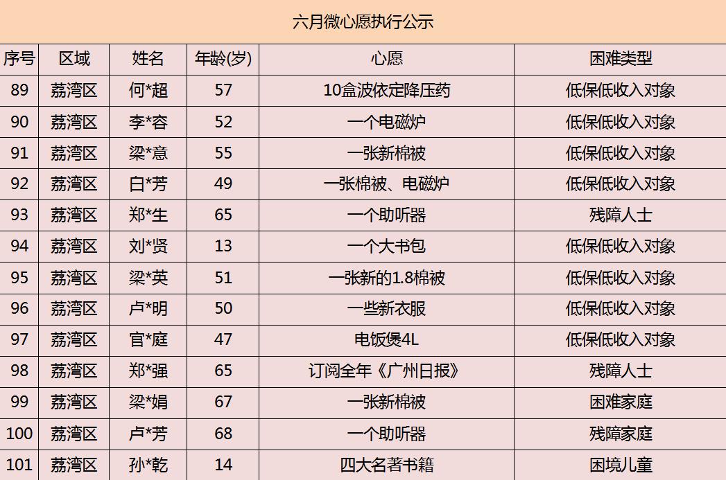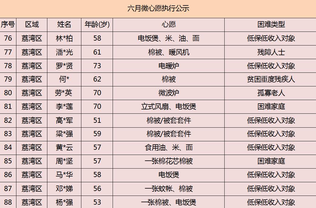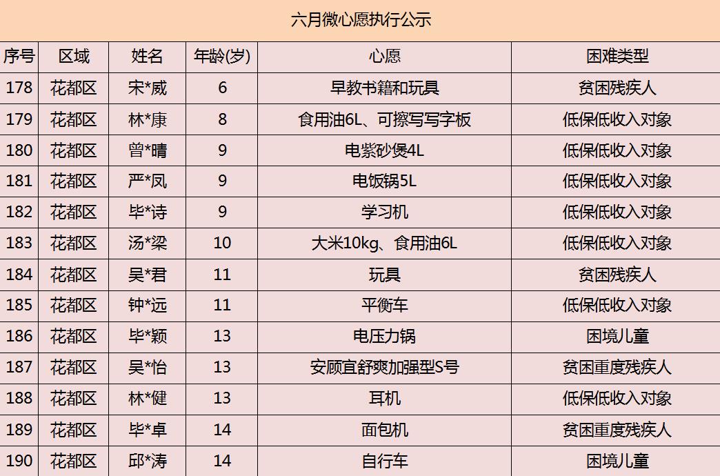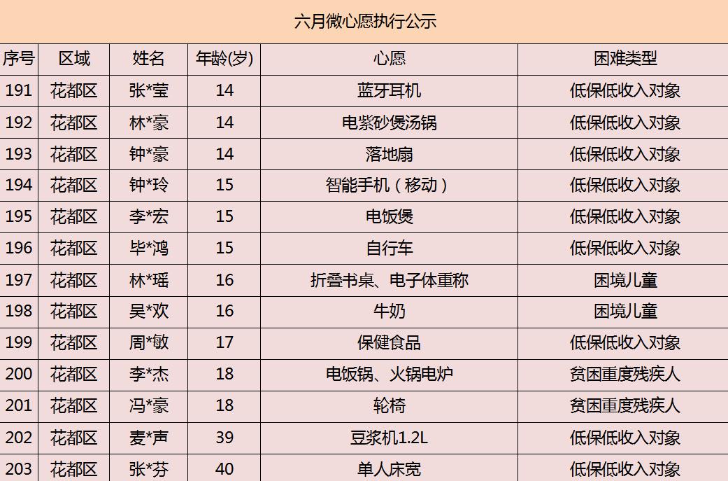 2020年广州市慈善会6月“微心愿·善暖万家”执行名单公示