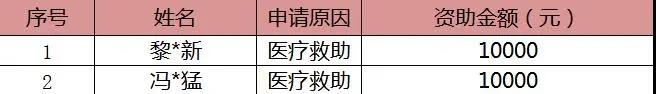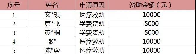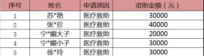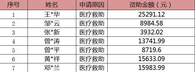 6月慈善救助名单公示如下: