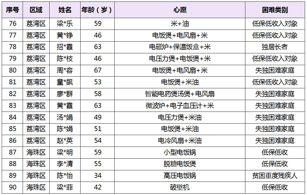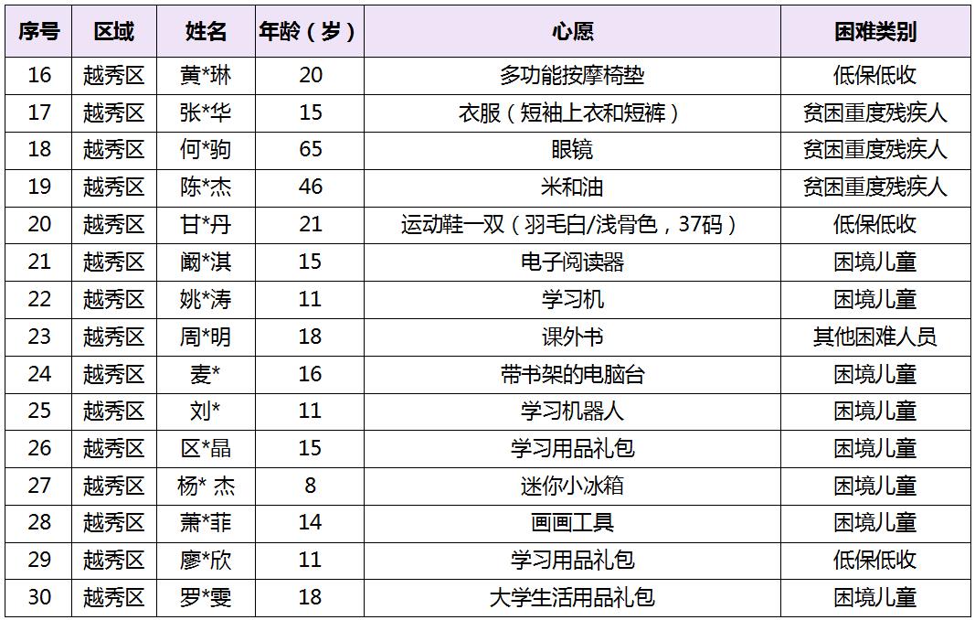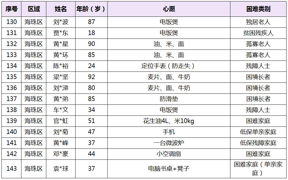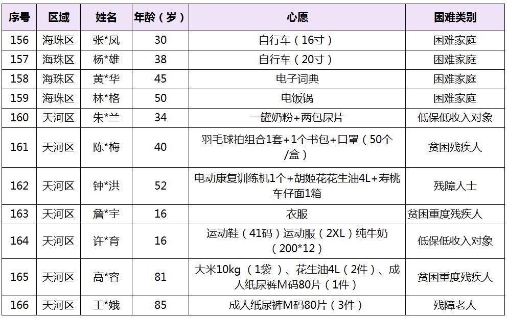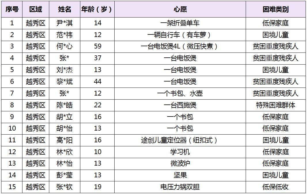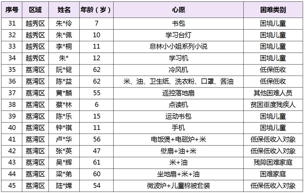 2020年广州市慈善会8月“微心愿·善暖万家” 执行名单公示