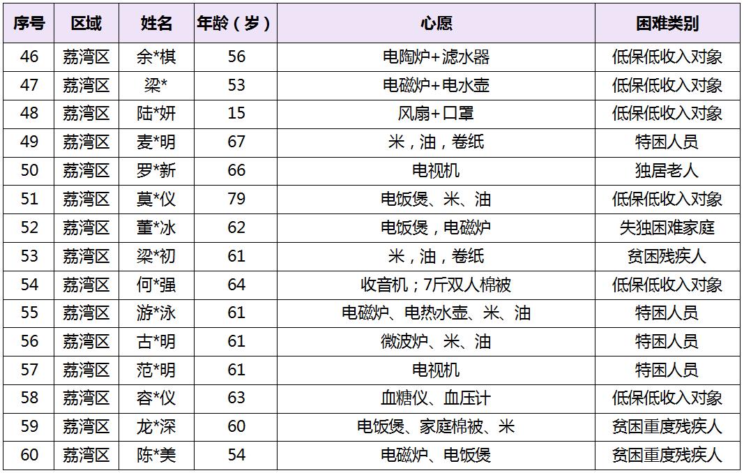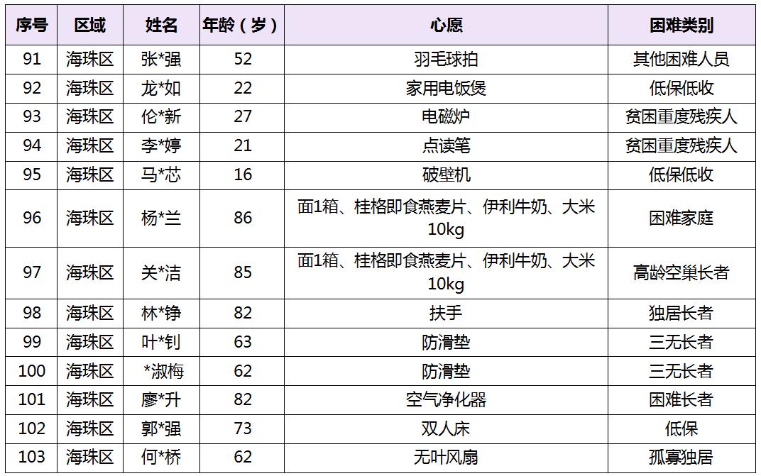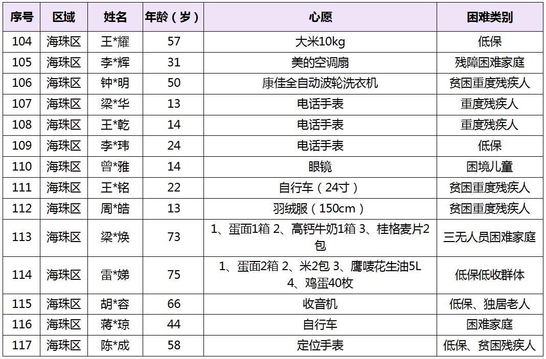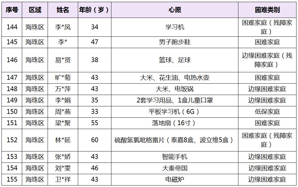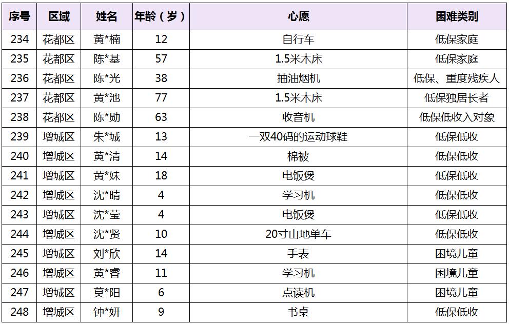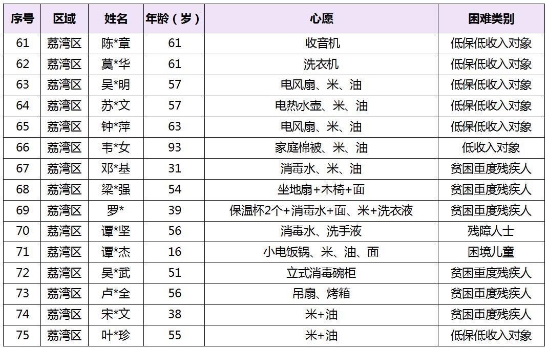 2020年广州市慈善会8月“微心愿·善暖万家” 执行名单公示